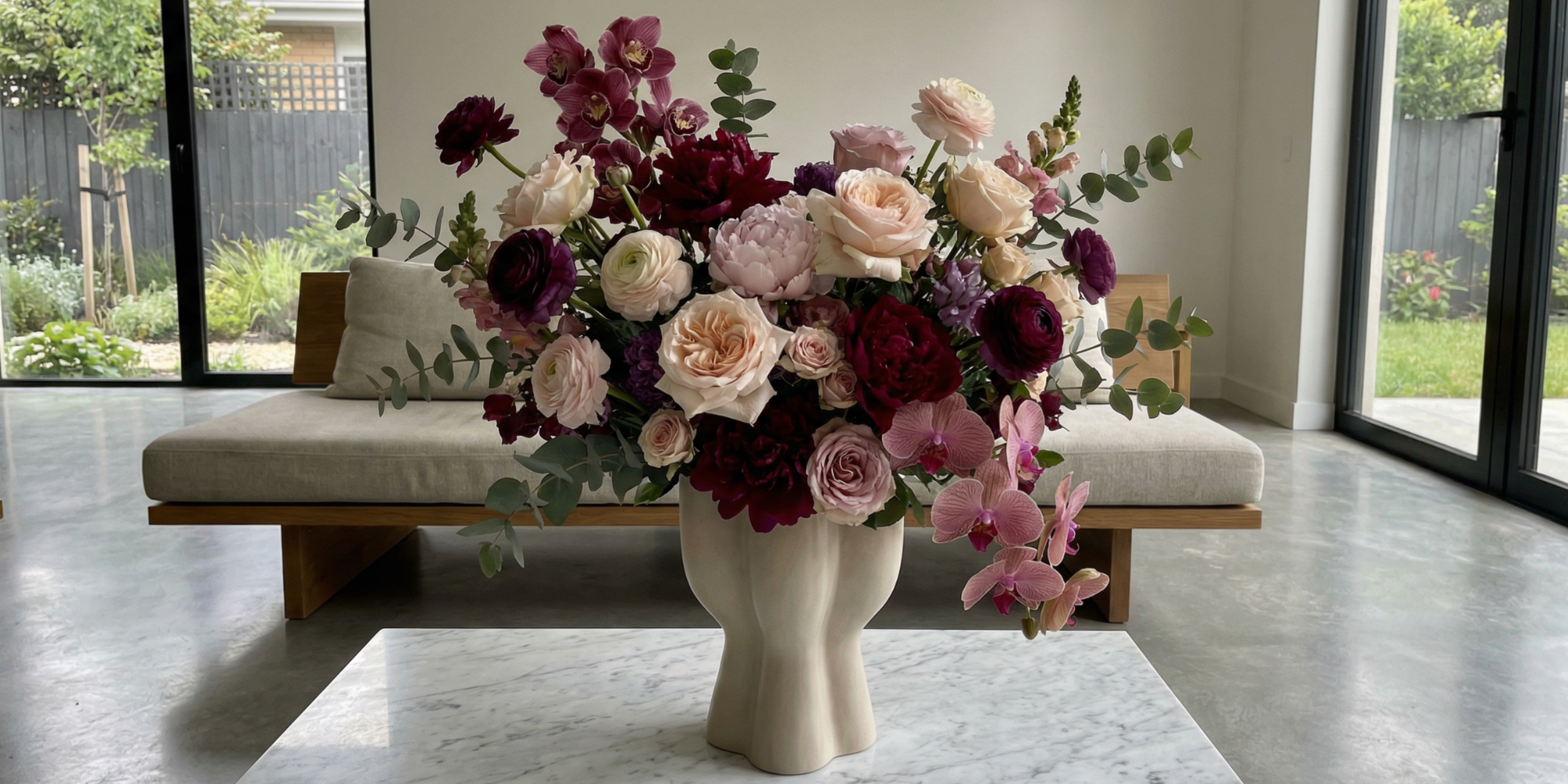 Elke maand een royaal deluxe boeket, aangevuld met periodieke extra’s zoals een vaas of een decoratie-item.